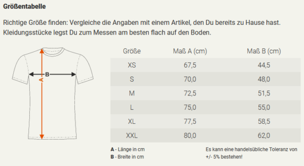 Bei Bestellungen bitte folgende Größentabelle berücksichtigen: